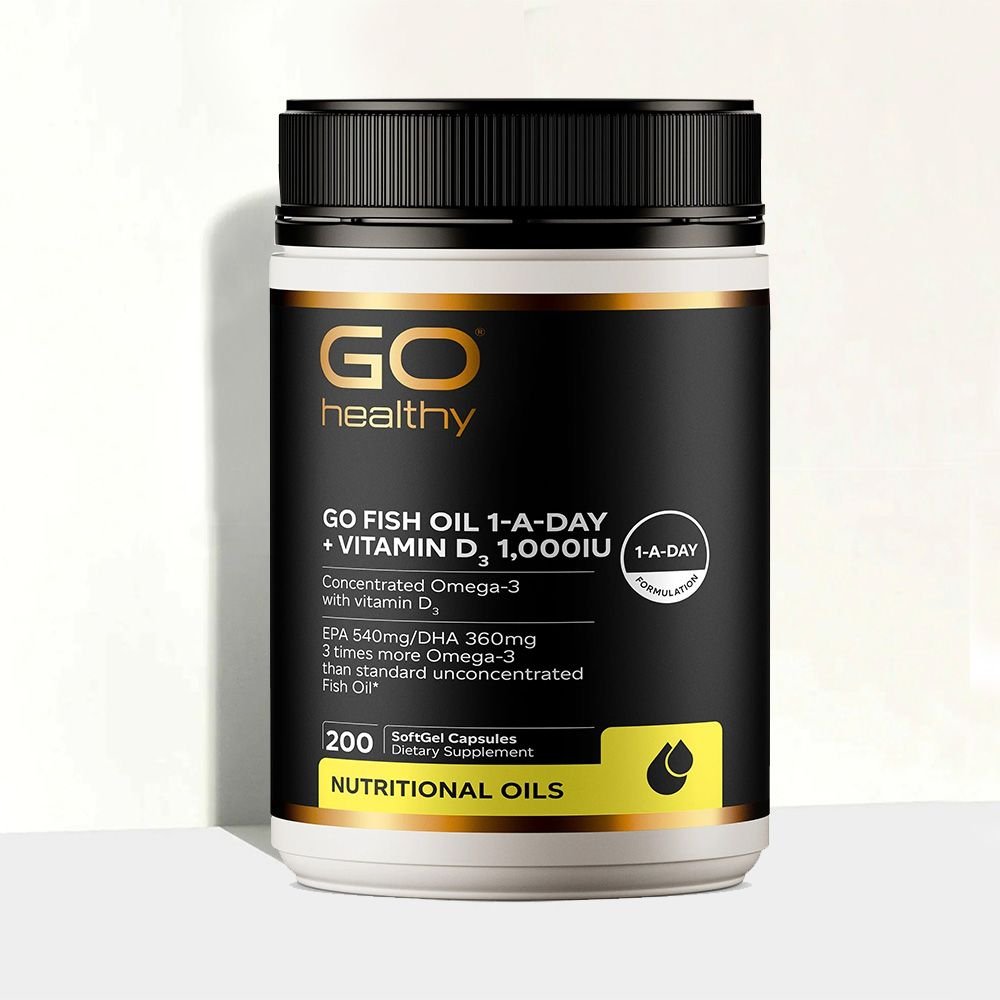 GO FISH OIL 1-A-DAY + VITAMIN D3 1,000IU 200គ្រាប់