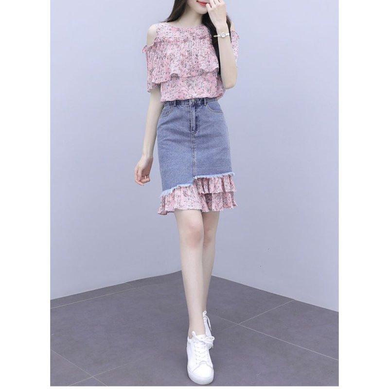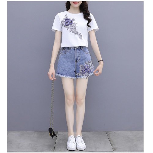 ឈុតខោខាវប៊ូយខ្លីនិងអាវយឺតនារី